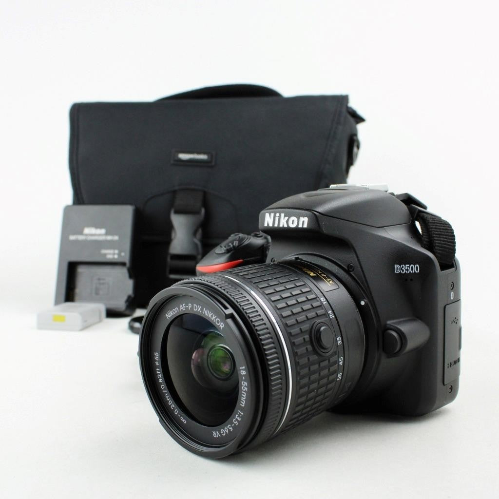 Includes 18-55 VR AF-P lens, camera bag, strap,