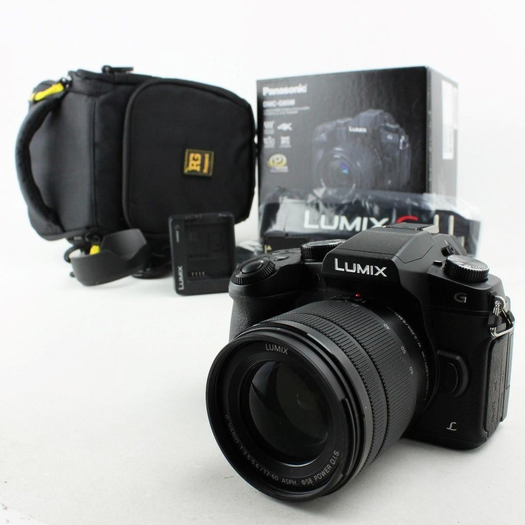 Includes 12-60mm lens, lens hood, camera bag, Lumix strap, USB cable,