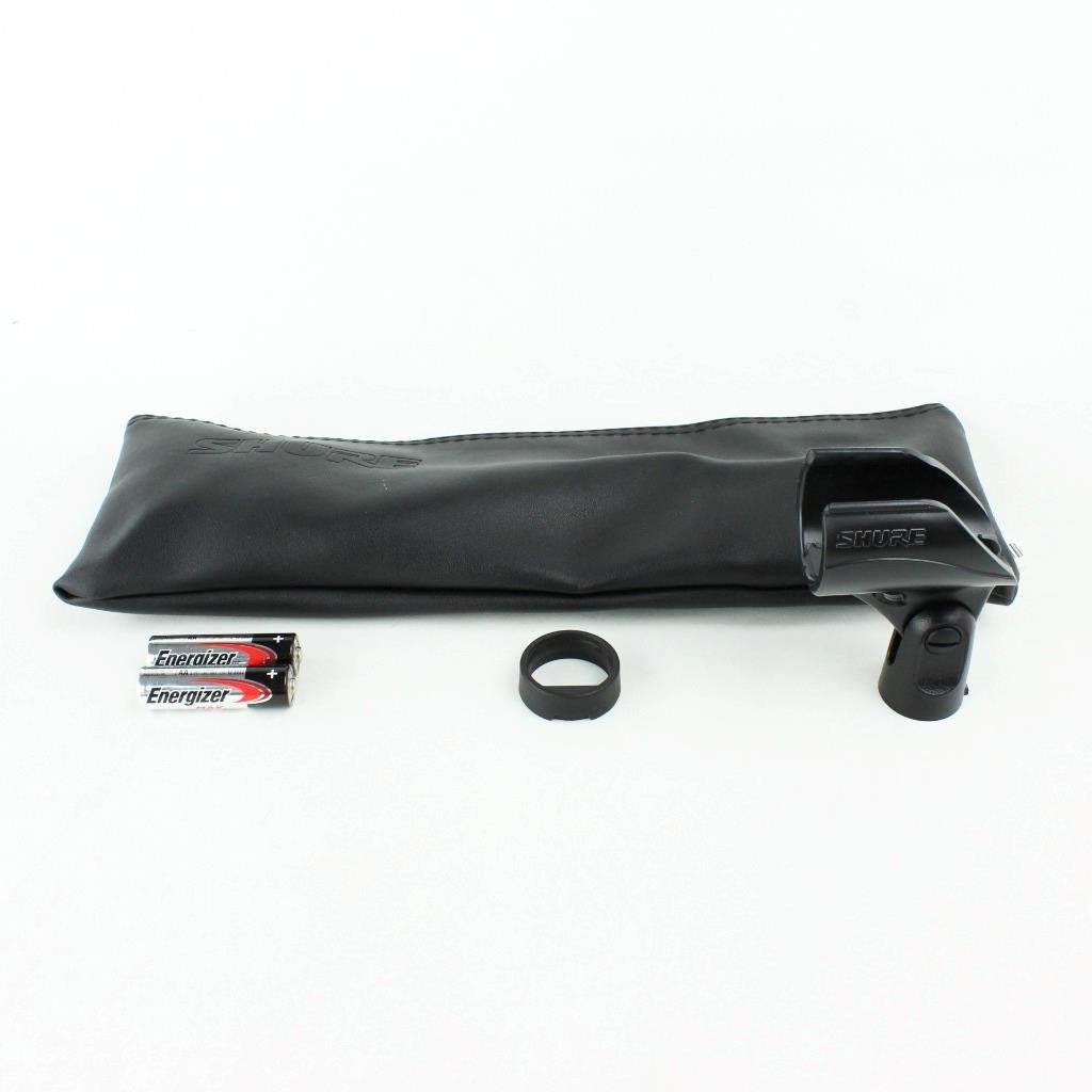 Includes mic clip, batteries, and mic pouch.